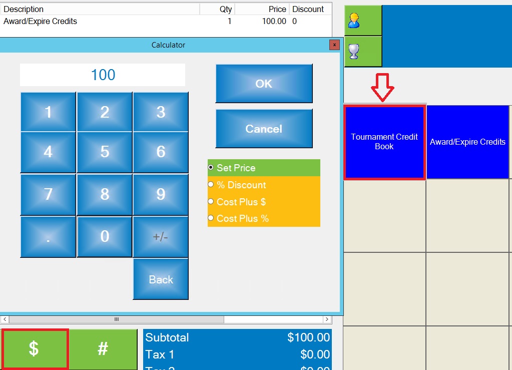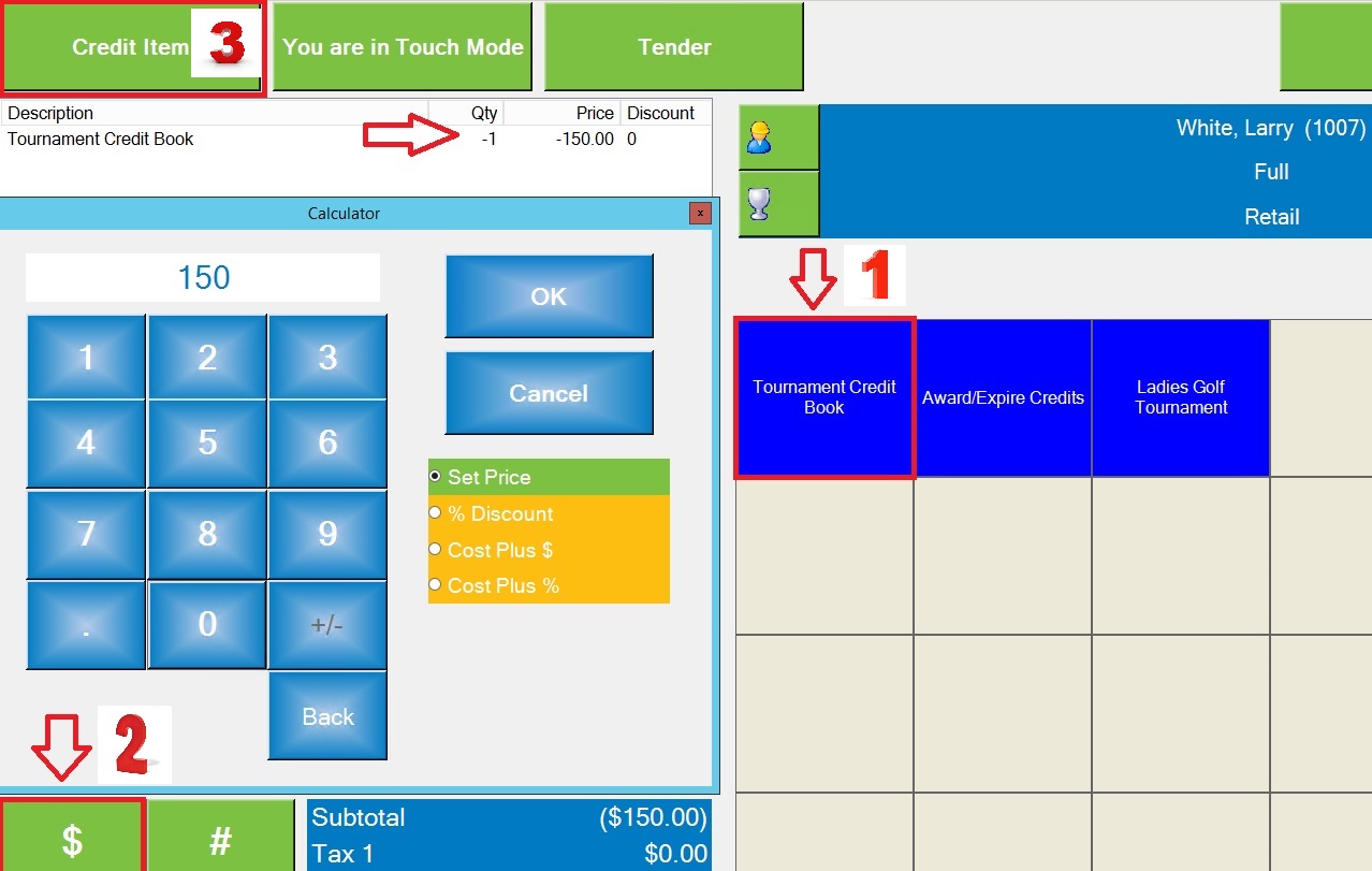 To award credits to a member, you do so through a POS transaction by crediting the member for a credit book item (the price is set at the time of sale to a negative amount):