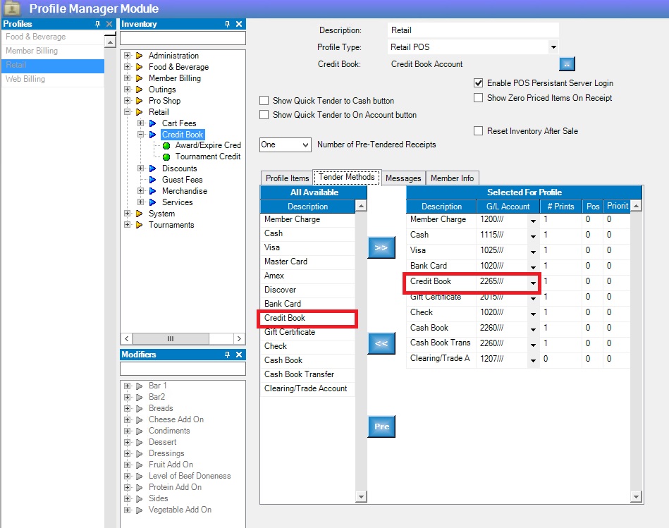Credit Book: Add the Credit Book tender method with applicable Liability Account