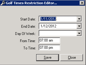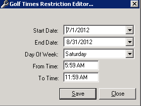 Click on Add a time restriction. Golf Times Restriction Editor will open.