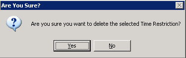 You must highlight a current time restriction in the Time Restrictions window. Click Delete. The following window will open: