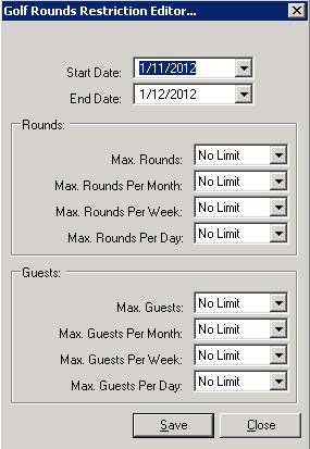 Click on Add a round restriction. Golf Rounds Restriction Editor will open:
