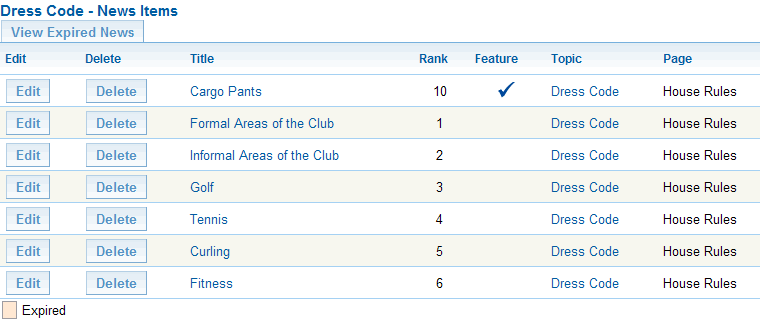After clicking 'View News' you will see the following display, which is a list of all of the news Items that belong to that Topic: