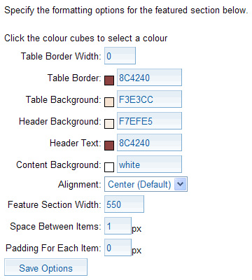Formatting options for the featured section items are also available. These let you control how they appear, giving you the ability to modify their looks to comply with the rest of the site content. To format the Featured Section, select the Formatting button on the button bar.