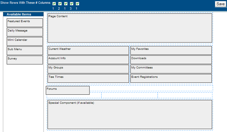 - Special Component: If your page is a special page (event registration, forums, etc.), put this component in to specify where you want the special content to be.