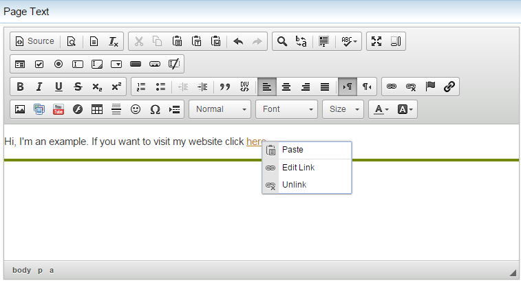 To perform an operation listed in the context menu, select it with the left mouse button. If an option is grayed out, like the Cut and Copy operations above, it is unavailable unless some pre-conditions are met (eg. an element is selected).