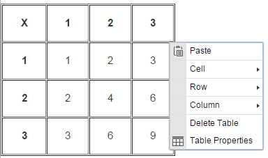 If, for example, you press the right mouse button while inside a table, you will see some table-specific options available in its context menu: