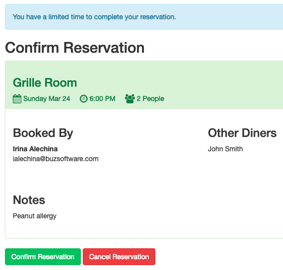 8. Tap the green Confirm Reservation button to complete the reservation.