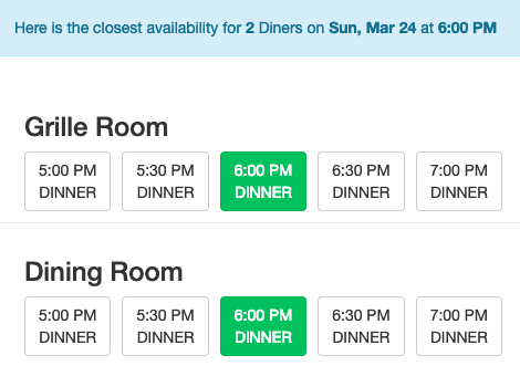 4. As you select the date, time and party size, you will now see a grid representing all available times within 2 hours of your preferred time.