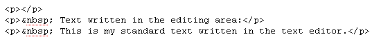 If at any time you would like to check the HTML source code of your document, use the toolbar button. The text that will appear in the editing area contains all the relevant HTML tags and attributes.